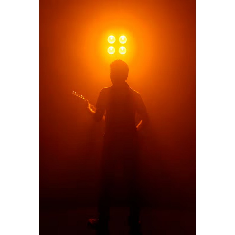 Chaque source COB combine blanc froid, blanc chaud et ambre pour reproduire les nuances et la chaleur des blinders halogènes, tout en réduisant drastiquement la consommation. En DMX 7 ou 16 canaux, vous pilotez précisément intensité et couleur de chaque LED, ou vous activez des macros d’effets : couleurs statiques, saut et dégradé de couleurs, changement avec pulsation et stroboscope pour des accents très nets. Pour les setups rapides, les modes Auto et Musical prennent le relais, tandis que le mode Maître/Esclave simplifie le calage de plusieurs unités. L’écran numérique à 4 boutons assure une navigation immédiate, et les connectiques XLR 3 points facilitent le chaînage DMX. Le châssis en acier et l’indice IP20 conviennent aux usages en intérieur, en tournée comme en installation fixe.