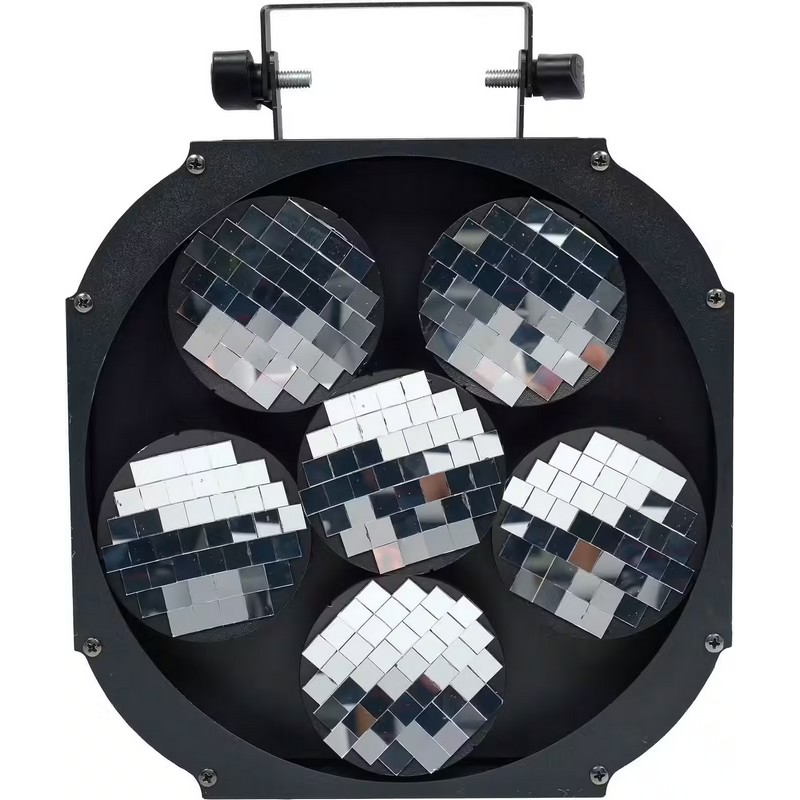 Véritable incontournable de toute soirée disco’ et de tout nightclub digne de ce nom, la boule à facette est certainement l’effet le plus emblématique des années 80 ! Avec le Moving Mirror 6, Algam Lighting propose une version revisitée et modernisée de ce célèbre effet. Composée de 6 disques rotatifs motorisés et incurvés recouverts d’une mosaïque de miroirs, capable de fonctionner à des vitesses différentes et dans des sens opposés, le Moving Mirror 6 est capable de générer un impressionnant effet de boule à facettes, avec des motifs en mouvement s’entrecroisant dans l’espace. Braquez simplement une faisceau lumineux suffisamment puissant et concentré provenant d’une lyre Beam ou Spot sur les miroirs, et c’est parti pour la soirée disco !