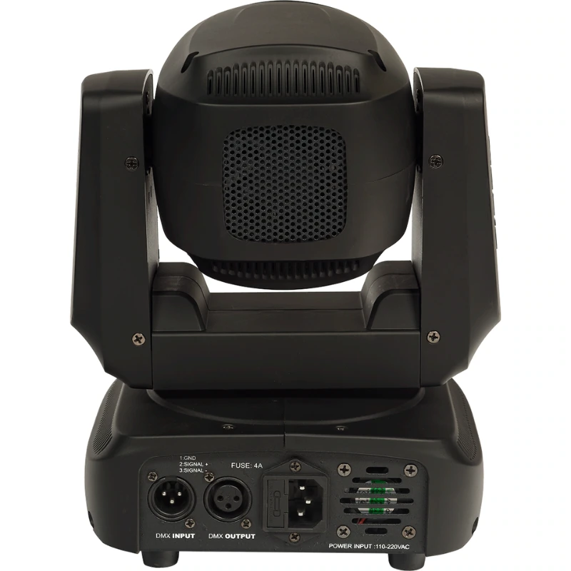 Doté d’une motorisation très discrète qui n’a rien à envier aux modèles professionnels, les mouvements de panoramique jusqu’à 540° et de tilt jusqu’à 180° de ce projecteur LED sont aussi spontané que précis. Embarquant une entrée et une sortie DMX pour un contrôle à distance, il est aussi possible de paramétrer la lyre en mode automatique ou au rythme de la musique via le panneau de commande intégrée. D’un poids plume de 3 kg pour un encombrement très réduit, cette lyre est équipée d’une embase pour des installations la tête en bas en toute sécurité.