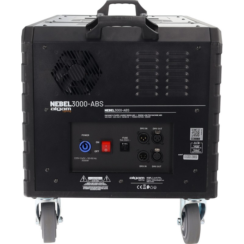 Destinée aux prestataires et aux installations professionnelles, la NEBEL3000 ABS repose sur un châssis en ABS robuste, offrant une excellente résistance aux chocs tout en restant plus léger que des solutions métalliques équivalentes. Elle est équipée d’un réservoir de liquide à fumée de 2 L, idéal pour les prestations de longue durée, ainsi que d’une jauge de niveau d’eau facilitant le contrôle du remplissage. Avec un poids de 30,6 kg et des dimensions adaptées aux machines atmosphériques de forte puissance, elle reste facilement manipulable et transportable dans un contexte de tournée ou d’événementiel grâce aux 4 roues livrées.