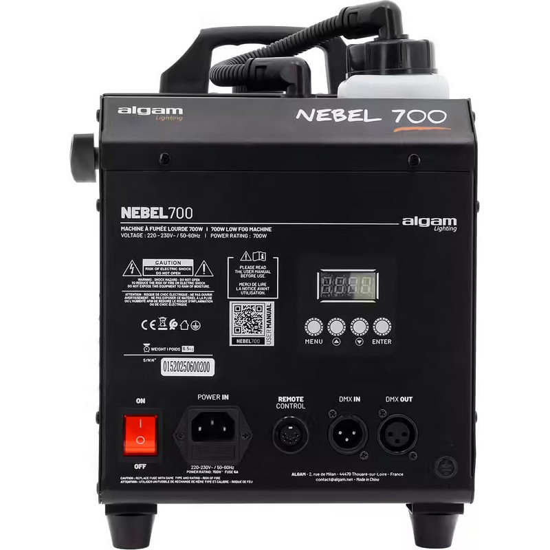 Pensée pour s’adapter à tous les contextes, la Nebel 700 offre plusieurs modes de commande : manuel, télécommande, timer, ou DMX (2 canaux) pour une parfaite intégration dans vos régies lumière. Vous pouvez ajuster la quantité et la durée de l’effet selon vos besoins, pour un rendu toujours maîtrisé. Cette flexibilité en fait un excellent choix pour les prestataires mobiles comme pour les structures fixes.