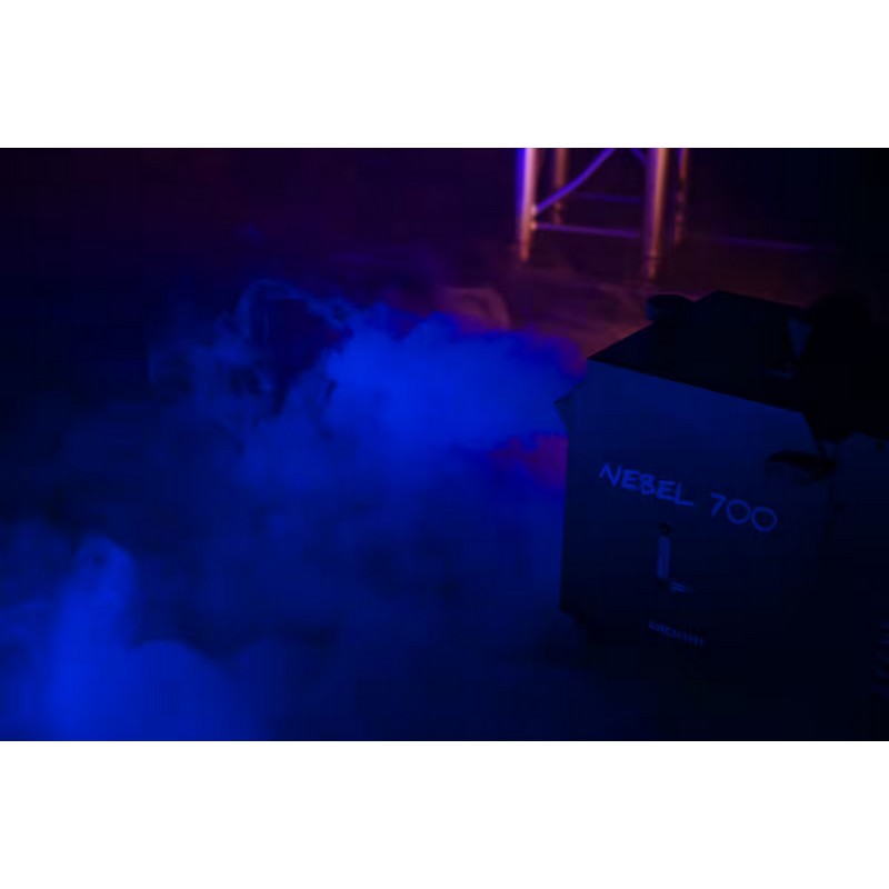 Avec ses dimensions contenues (440 × 310 × 240 mm) et ses 6,5 kg, la Nebel 700 est facile à transporter et à positionner sur scène ou en fond de décor. Son réservoir de 0,5 L permet une utilisation confortable pour les prestations de courte ou moyenne durée. Robuste et fiable, elle s’intègre aisément dans tout type de prestation nécessitant un effet de fumée au sol sans logistique contraignante.