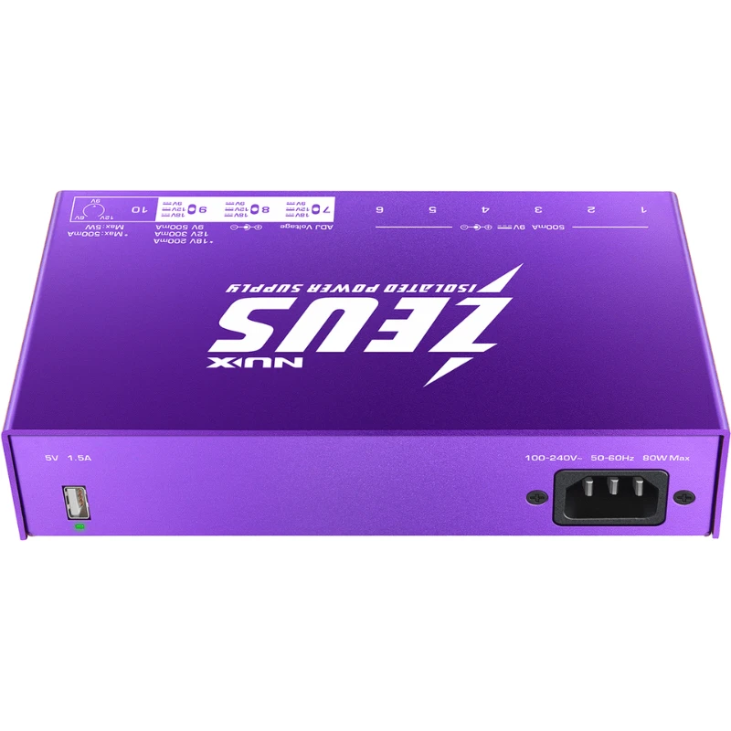 Les guirlandes d’alimentation et les boitiers d’alimentations non isolées peuvent créer des bruits de fond électrique et des buzz très gênants quand il s’agit d’alimenter plusieurs pédales. D’autant plus quand se mêlent des pédales d’effet analogiques et numériques ! Les pédales numériques étant de plus en plus performantes et présentes sur les pedalboards, mais également de plus en plus gourmandes en courant pour leur fonctionnement. Le Zeus est conçu pour délivrer des courants isolés, avec un ampérage élevé, pour les pédales numériques modernes. Ses alimentations à découpage avec deux niveaux d’isolation assurent un courant stable, précis, et très silencieux. Cette conception exigeante permet exploiter de manière performante toutes vos pédales afin d’obtenir un rendu sonore optimal. Le Nux Zeus répond aux besoins des guitaristes modernes, offrant une solution très fiable et performante pour alimenter leurs pédales, où qu’ils soient dans le monde !