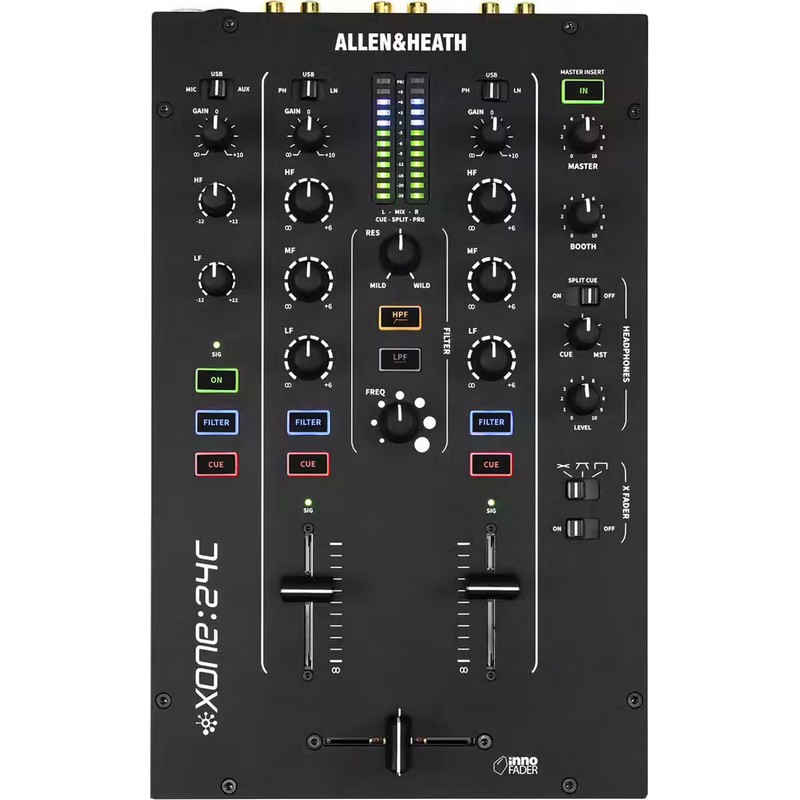 La Xone:24C est une table de mixage DJ hybride compacte à 2+1 canaux qui allie une qualité sonore analogique à une connectivité numérique flexible.