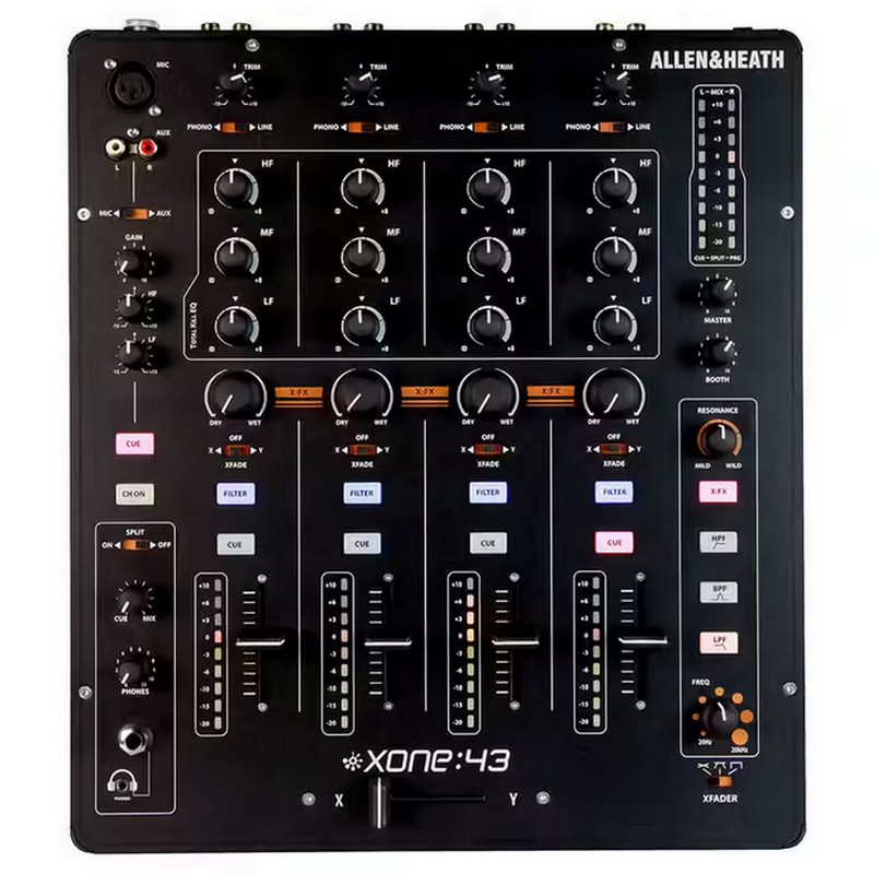La Xone 43 a spécialement été conçue pour le DJ et les amateurs de musique électronique. Les DJ ayant déjà mixé sur les modèles numériques DB2 et DB4, se sentiront à l’aise avec cette console à 4 voies. Cependant, la Xone:43 est une console analogique, pourvue d’un filtre VCF avec fonction passe-haut, passe-bas et passe-bande, contrôle de résonance et de la fréquence de balayage. Fonctions que l’on retrouve également sur la référence des consoles de mixage, la Xone:92.