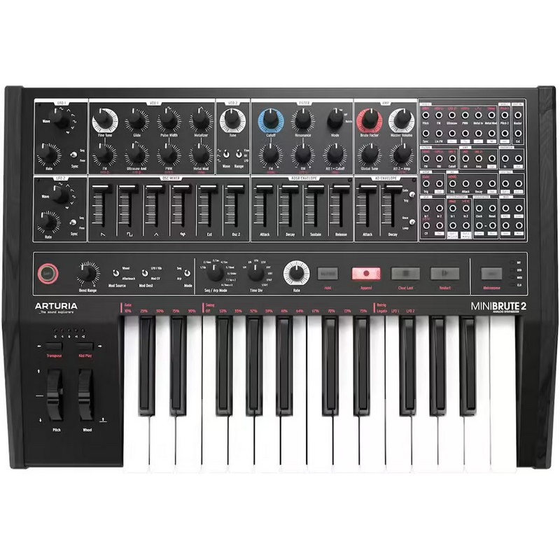 Le MiniBrute 2 reprend les recettes qui ont fait le succès du premier MiniBrute. Vous y trouverez donc le 1er VCO à forme d’ondes multiples. Vous serez ravi de constater que celui-ci se double d’un second VCO qui peut fonctionner en Sub, en troisième Lfo aussi bien qu’à l’unisson. Ce second VCO ajoute notamment la forme d’onde sinusoïdale qui complètet ainsi la large palette de timbres de ce magnifique instrument. Un deuxième Lfo accroît également la puissance de synthèse du MiniBrute 2.