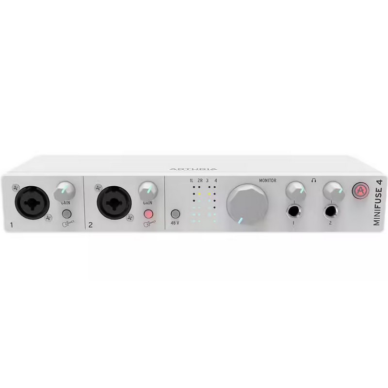Avec la MiniFuse 4, ce n’est pas juste une interface audio que vous achetez mais un ensemble de production complet : coté Arturia vous disposerez d’Analog Lab Intro, regroupant les meilleurs sons de synthés mythiques de la V-Collection Arturia. Vous bénécierez également du préamp et Eq 1973 inspiré des consoles Neve, le chorus JUN6-V idéal pour les synthés et guitares, et la reverb Plate 140. Mais l’offre ne s’arrête pas là : Arturia a signé des accords avec les plus grandes sociétés afin de vous ajouter le DAW Ableton Live Lite, les guitaristes vont être aux anges avec Guitar Rig 6 LE en version illimitée et les chanteurs auront le plaisir de pouvoir travailler avec AutoTune Unlimited (abonnement gratuit de 3 mois). Pour finir, afin de pouvoir nourrir de samples et de boucles Ableton Live Lite, Splice est également fourni avec (abonnement gratuit de 3 mois).