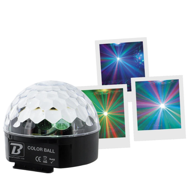 Demi-boule lumineuse à LEDS dotée de 3 LEDS RGB d’une puissance totale de 9 W, programmes intégrés, réagit à la musique, la remplaçante de la boule à facettes, version éco ! Couplez à une machine à fumée, vous obtiendrez un rendu génial pour vos soirées ! Télécommande incluse.