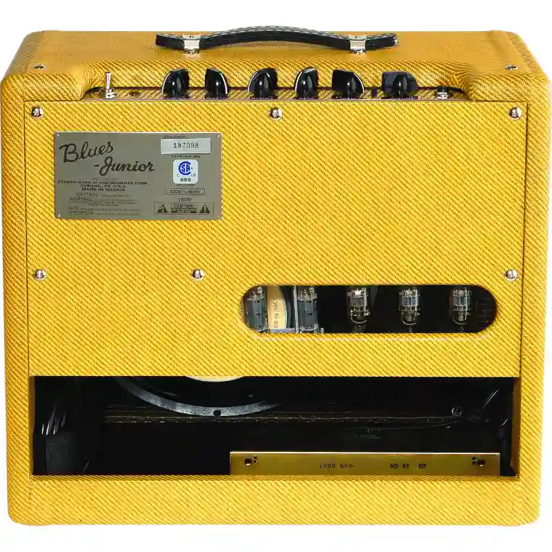 Avec Le Blues Jr. Lacquered Tweed, Fender a offert à son joyau de 15W un véritable traitement vintage en lui appliquant un revêtement tweed laqué et en y intégrant un haut-parleur Jensen de 12″ (305 mm) au son vintage. Ses sonorités exceptionnelles sont générées par un trajet de signal tout lampes utilisant une paire de tubes de puissance EL84 et trois 12AX7 à l’étage de préampli. Ajoutez à cela la célèbre réverbe Fender, des contrôles flexibles, un commutateur FAT pour booster les médiums, et vous voilà paré pour toutes les situations. Et regardez son panneau chromé, sa finition tweed avec sa grille en tissu marron et doré de style vintage et ses potentiomètres “Pointer” vintage !