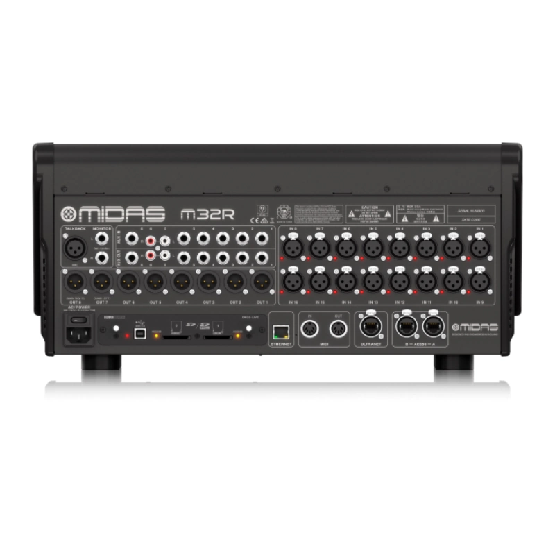 La Midas M32R LIVE est une console numérique compacte pensée pour les applications live et studio. Elle combine 32 canaux d’entrée, des effets internes puissants, une interface USB 32×32 canaux et une ergonomie intuitive autour d’un écran tactile 7″. Conçue avec les préamplis Midas PRO, elle garantit une restitution sonore précise et professionnelle.