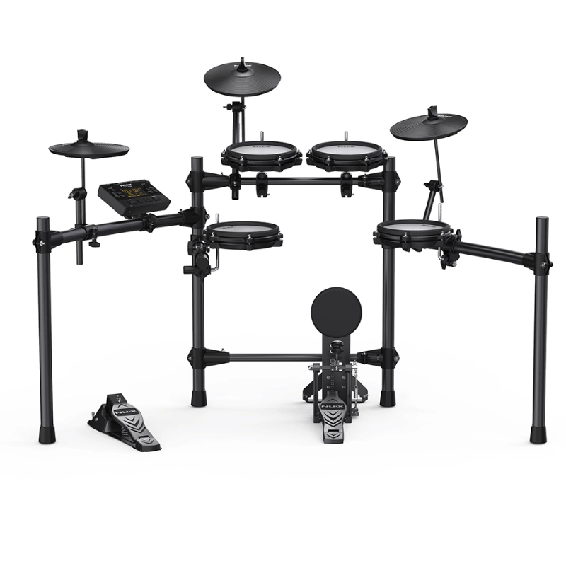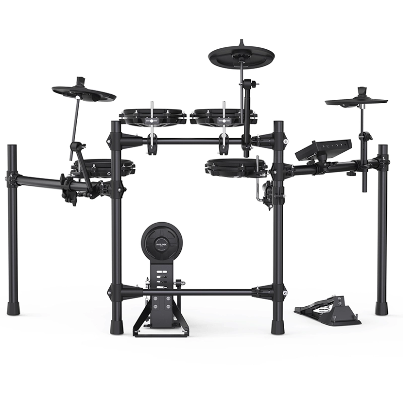 La NUX DM-210 est dotée de pads en peau maillée de très bonne manufacture, conçus pour offrir une sensation de jeu naturelle et réaliste. Ces pads sont silencieux, ce qui est parfait pour s’entraîner sans déranger l’entourage.