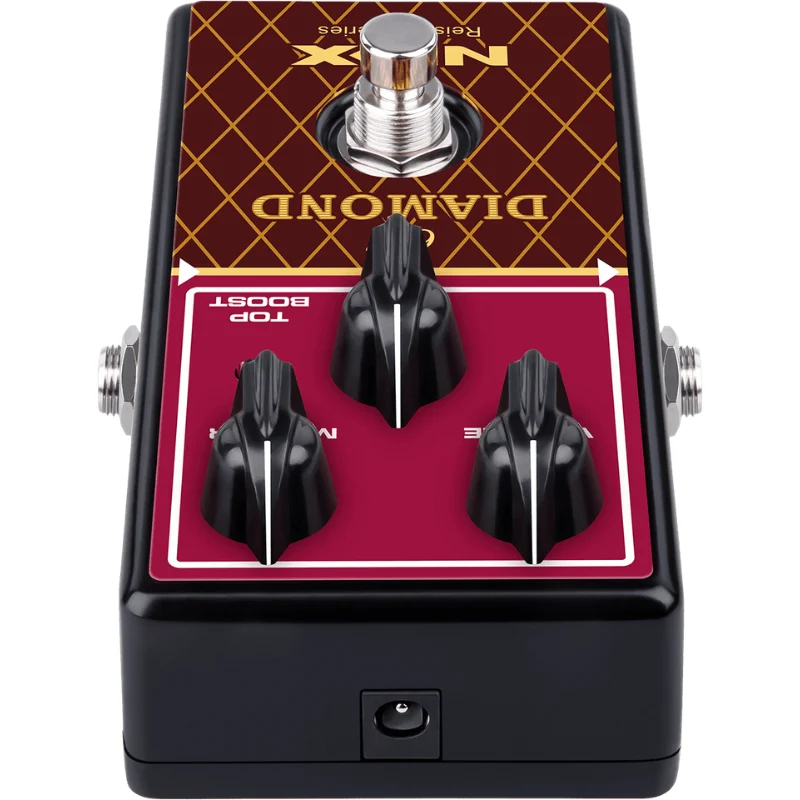Au-delà des sons clairs / crunchy pour lesquels ils sont mondialement reconnus durant la British Invasion avec Les Beatles ou Les Rolling Stones, les amplis à lampes type Diamond produisent des sonorités d’overdrive britannique punchy chargées d’harmoniques et de compression ! Plus tard, avec le circuit Top Boost qui permet de booster les fréquences aigues et de saturer encore plus le signal, le légendaire guitariste Brian May du groupe Queen a continué de construire le mythe de ces amplis légendaires ! Mais attention aux oreilles, car pour obtenir ce son saturé et compressé si particulier, les amplis devaient être poussé dans leur retranchements. Le Nux Diamond 63 overdrive vous permet de retrouver ces sons de manière analogique à moindre volume sur votre ampli.