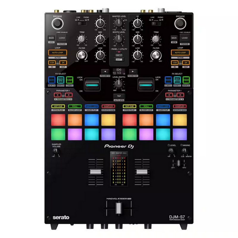 Que vous enchaîniez les flips en club, que vous performiez en showcase ou que vous prépariez une routine DVS, la DJM-S7 s’adresse aux scratchers exigeants comme aux DJs polyvalents. Son architecture 2 voies, ses pads surdimensionnés et ses leviers d’effets apportent vitesse d’exécution et précision, en booth fixe comme en setup mobile ou en home-studio.