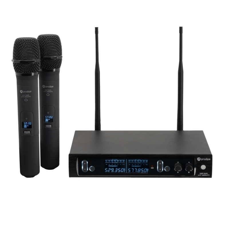 Avec la série ” M850 DSP “, Prodipe fait évoluer ses systèmes UHF vers plus de stabilité et de définition. Le circuit Digital Signal Processor gère et stabilise numériquement les porteuses UHF pour un rendu sans fil qui se rapproche de la sensation d’un micro filaire, tout en conservant la liberté de mouvement.