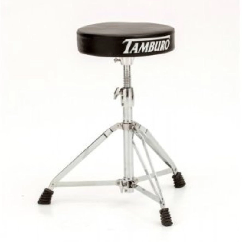 Siège de batterie série 200 avec hauteur réglable, tige filetée et bague de verrouillage. Assise circulaire. Pieds à double accoudoirs
